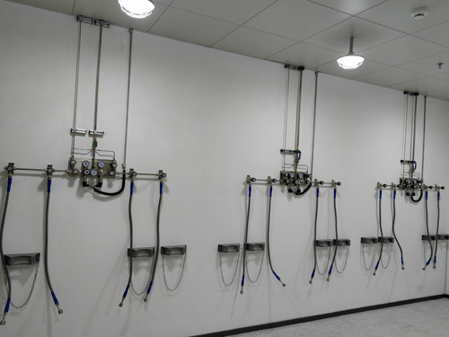 1.氣瓶間內各種壓力調理開關與科學實驗房間內的氣路手持終端中間使用的SS316LBA管實行鏈接,途徑內外層晶亮度為Ra<0.4umBA級途徑。